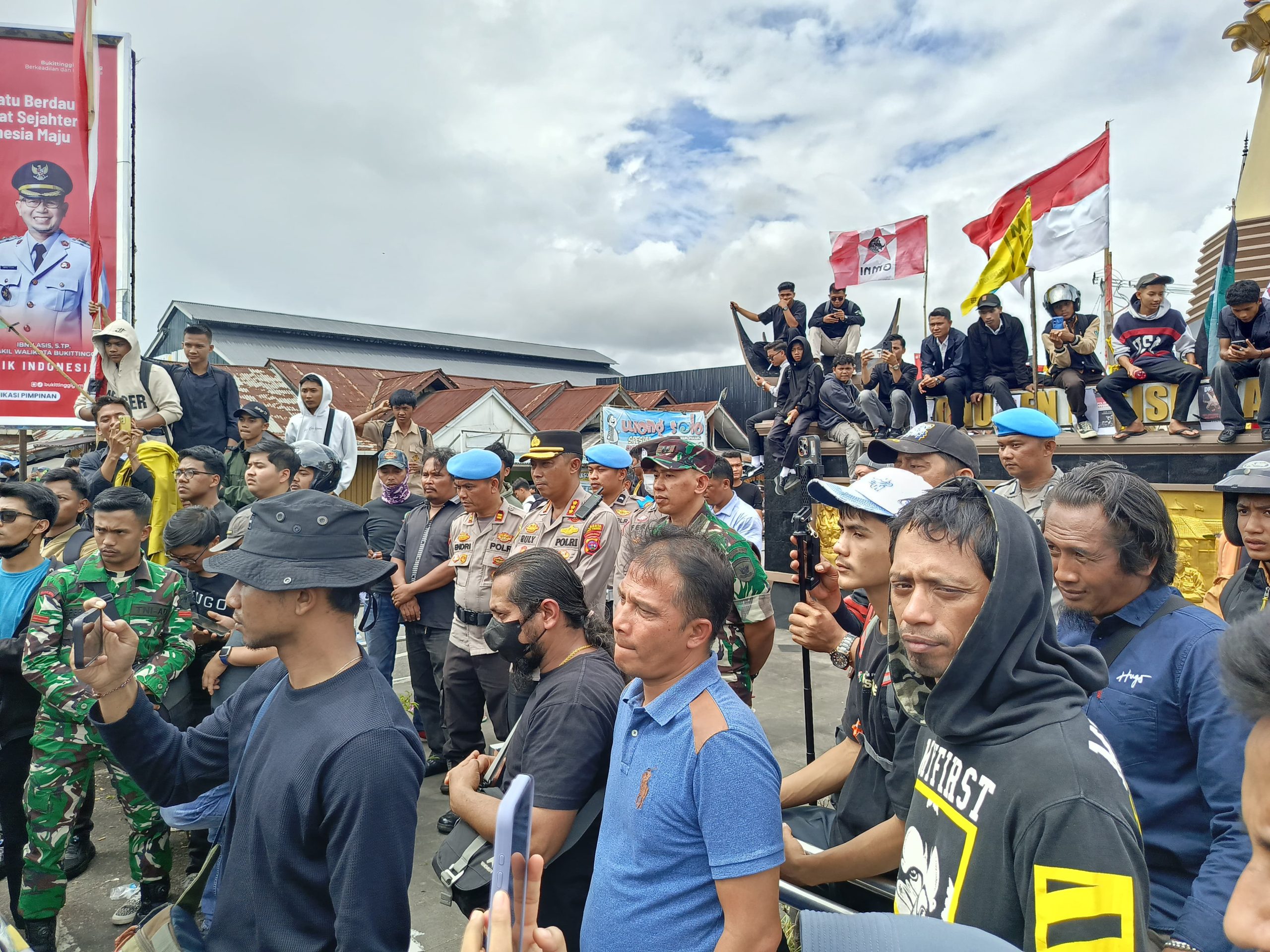 Ditengah aksi, Kapolresta Bukittinggi bersama Dandim 0304 Agam Slamet Dwi Santoso beserta rombongan mendatangi langsung peserta aksi ke Tugu Polwan. Disini Kapolresta mendengarkan langsung berbagai aspirasi dan kritikan dari para peserta.
