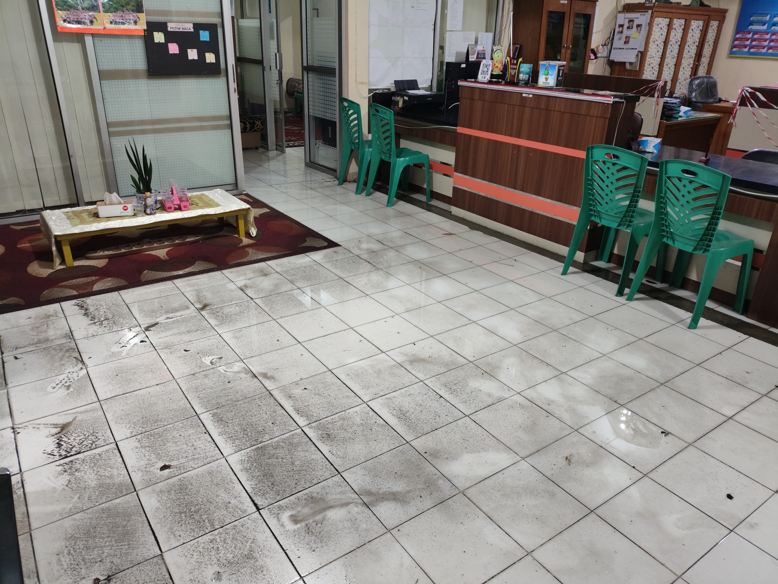 ​Hingga berita ini diturunkan, air sudah mulai surut seiring berhentinya hujan, namun sisa lumpur dan sampah masih memenuhi area kantor.