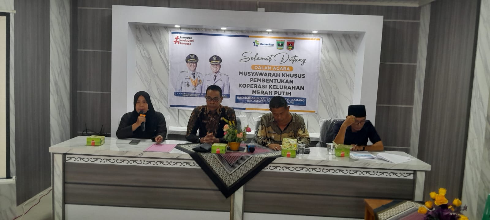 Bukittinggi GMU News/ – Aula kantor Lurah Bukik Cangang Kayu Ramang, Kecamatan Guguak Panjang, menjadi saksi pembentukan kepengurusan Koperasi Merah Putih pada hari Kamis (22/05/2025). Pembentukan ini dihadiri oleh perwakilan Dinas Koperasi, Perindustrian, dan Perdagangan (Koperindak), Camat Guguak Panjang, Lurah Bukik Cangang, tokoh masyarakat, perangkat kelurahan, serta masyarakat setempat.