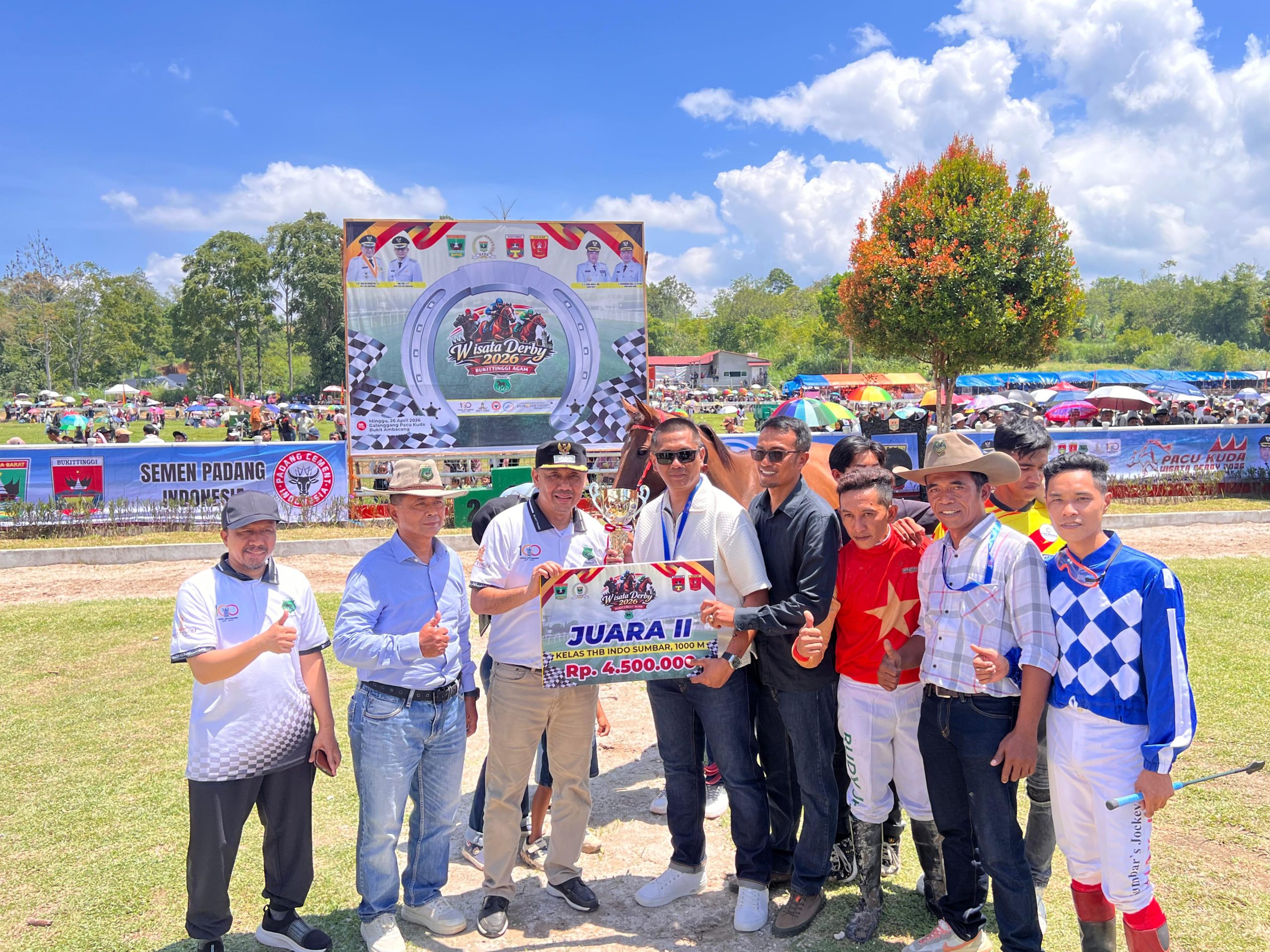 “Wakil Bupati Kabupaten Agam, Muhammad Iqbal, menyampaikan kebanggaannya atas terselenggaranya lomba pacu kuda wisata derby 2026. Ia berharap ajang tahunan ini tidak hanya menjadi sarana olahraga, tetapi juga mampu menggerakkan roda ekonomi masyarakat serta memperkuat sektor pariwisata di Kabupaten Agam dan Kota Bukittinggi.